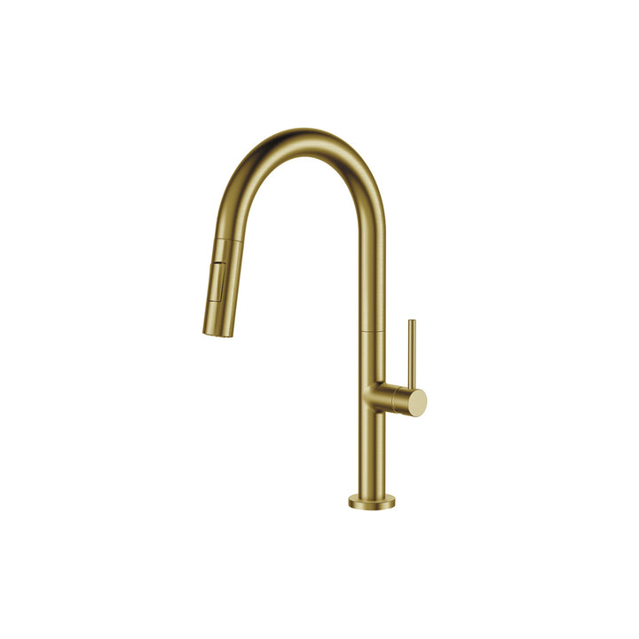 Accueil Robinet de cuisine à bec rétractable à double jets fini or brossé