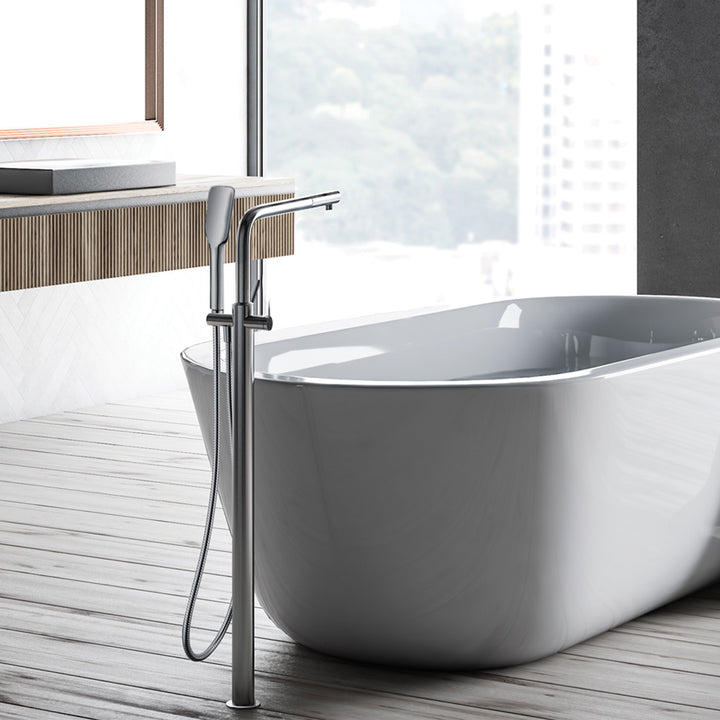 Créez une ambiance à la fois relaxante et traditionnelle avec ce robinet autoportant. La poignée unique facilite le contrôle de la température et du débit du bec et de la douchette à la main qui sera un véritable allié pour le rinçage. SABRINA est un excellent choix pour accompagner votre bain autoportant!