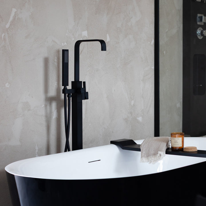 Ce robinet ajoutera un look moderne à votre bain autoportant. je Sa poignée unique facilite le contrôle de la température et sa douchette sera une véritable alliée pour le rinçage. La construction en laiton massif et la grille en céramique assurent la durabilité du robinet. SAKURA-BK est équipé d'une douchette à main et offre une pression équilibrée, ce qui le rend idéal pour un usage quotidien.