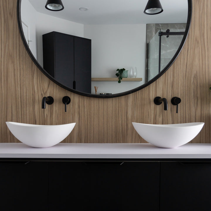 Simple and trendy, the FABIOLA solid surface washbasin is suitable for all bathrooms. With its soft curves, it has an elegant silhouette and a contemporary look that blends with almost any color and decorating style. It's quality material, with a solid non-porous surface, is scratch and stain resistant and requires less cleaning and maintenance. The Solid surface is a composite material known for its robustness, lightness and non-porosity. Designed to last, it is easy to maintain and its color does not tarnish over time. The deep oval creates a beautiful modern atmosphere, avoiding splashes.