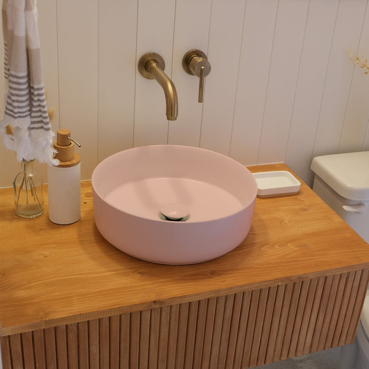 Made of porcelain, the above Matte Pink basin is easy to clean and maintain, and its central hole ensures maximum water drainage. It fits perfectly in any bathroom and gives it a modern look. Our bathroom sinks are the perfect answer to your needs and allow you to bring your best bathroom design ideas to life.
