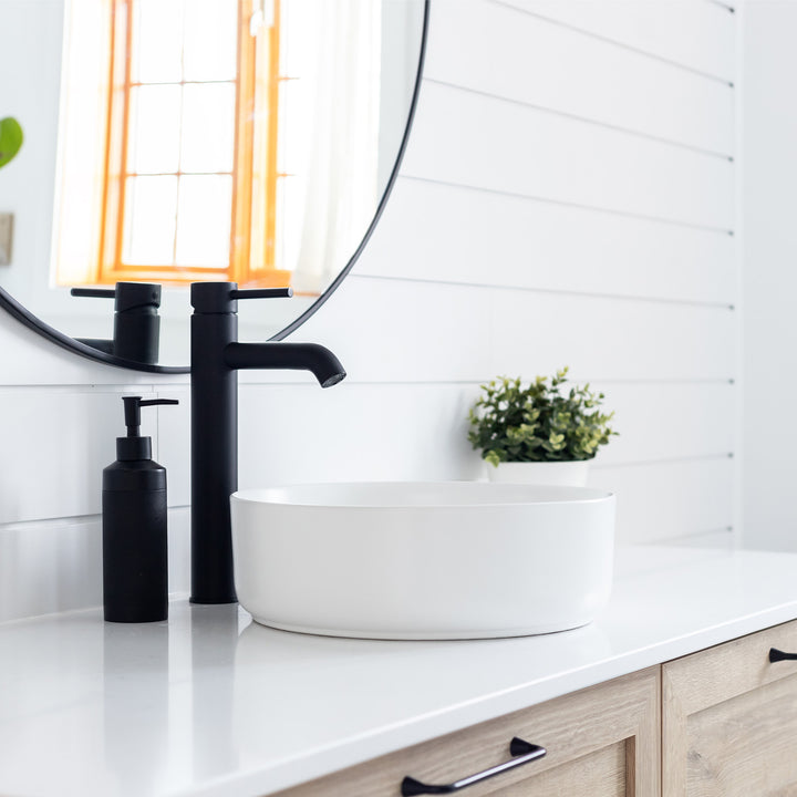 Made of grade porcelain, the above Matte White basin is easy to clean and maintain, and its central hole ensures maximum water drainage. It fits perfectly in any bathroom and gives it a modern look. Our bathroom sinks are the perfect answer to your needs and allow you to bring your best bathroom design ideas to life.