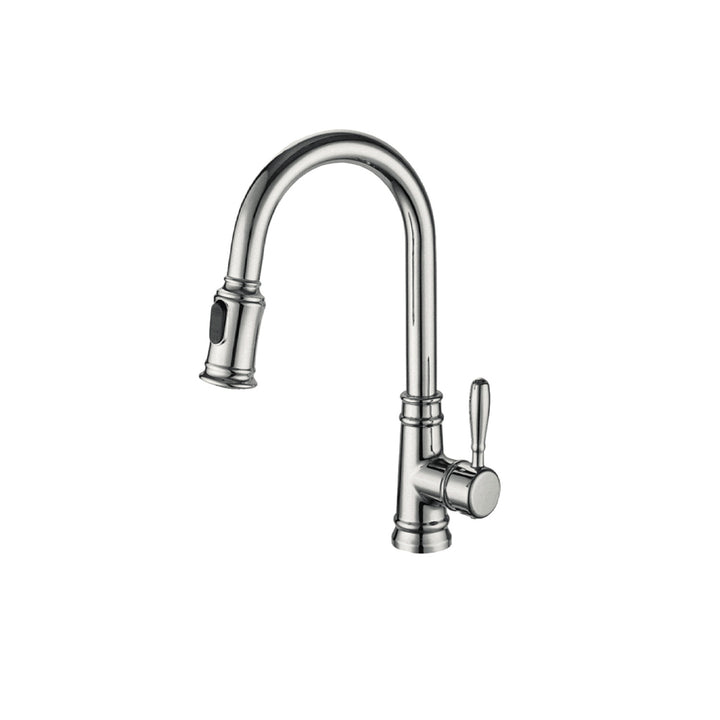 Bring a classic touch to your kitchen thanks to MONACO-BN timeless kitchen faucet. This solid brass made faucet includes a 2-jet pull-down spray and a flared spout, combining convenience and style. With its brushed nickel quality finish, you can match it to any kitchen to emphasize its look.