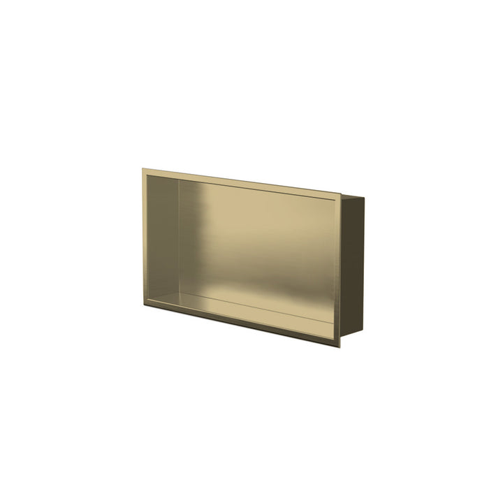 To add storage without compromising the style of your bathroom, opt for this spacious rectangular shower niche. With its sober and elegant design, this niche fits perfectly into any bathroom style. The brushed brass (gold) finish is easy to maintain and very durable!