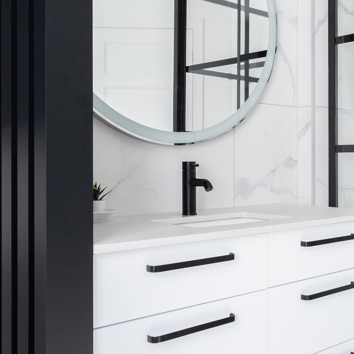 Be trendy with the REBECCA-BK faucet. Its geometric shapes accentuate any modern-style bathroom. Its ceramic cartridge and solid brass construction make the faucet very durable. Single handle offers effortless control of water flow and temperature.
