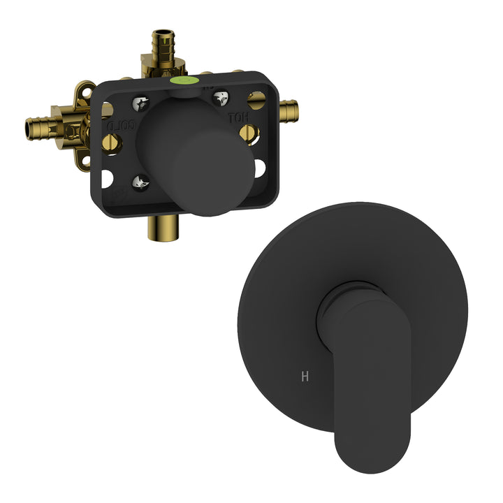 Elevate your shower with Vanessa-bk, a trim kit and rough-in set designed to combine modern elegance with simple, everyday functionality. Perfect for contemporary bathrooms, Vanessa’s clean lines and smooth finishes bring a polished, minimalist look that instantly enhances your space. he single handle lets you effortlessly control both water flow and temperature, making every shower easy, comfortable, and enjoyable. Behind the wall, the pressure-balanced valve ensures consistent performance so your water temperature stays steady from start to finish. Easy to clean and free of visible screws, Vanessa-bk keeps your bathroom looking sleek and streamlined with minimal effort. With Vanessa-bk, your shower isn’t just a routine - it becomes a stylish, stress-free retreat that adds a touch of modern sophistication to your bathroom.