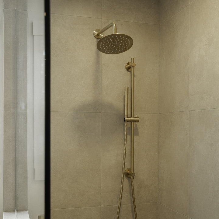 Home Thermostatic Shower Set Including Shower Head, Handshower On Rail And Valve In Brushed brass (gold)